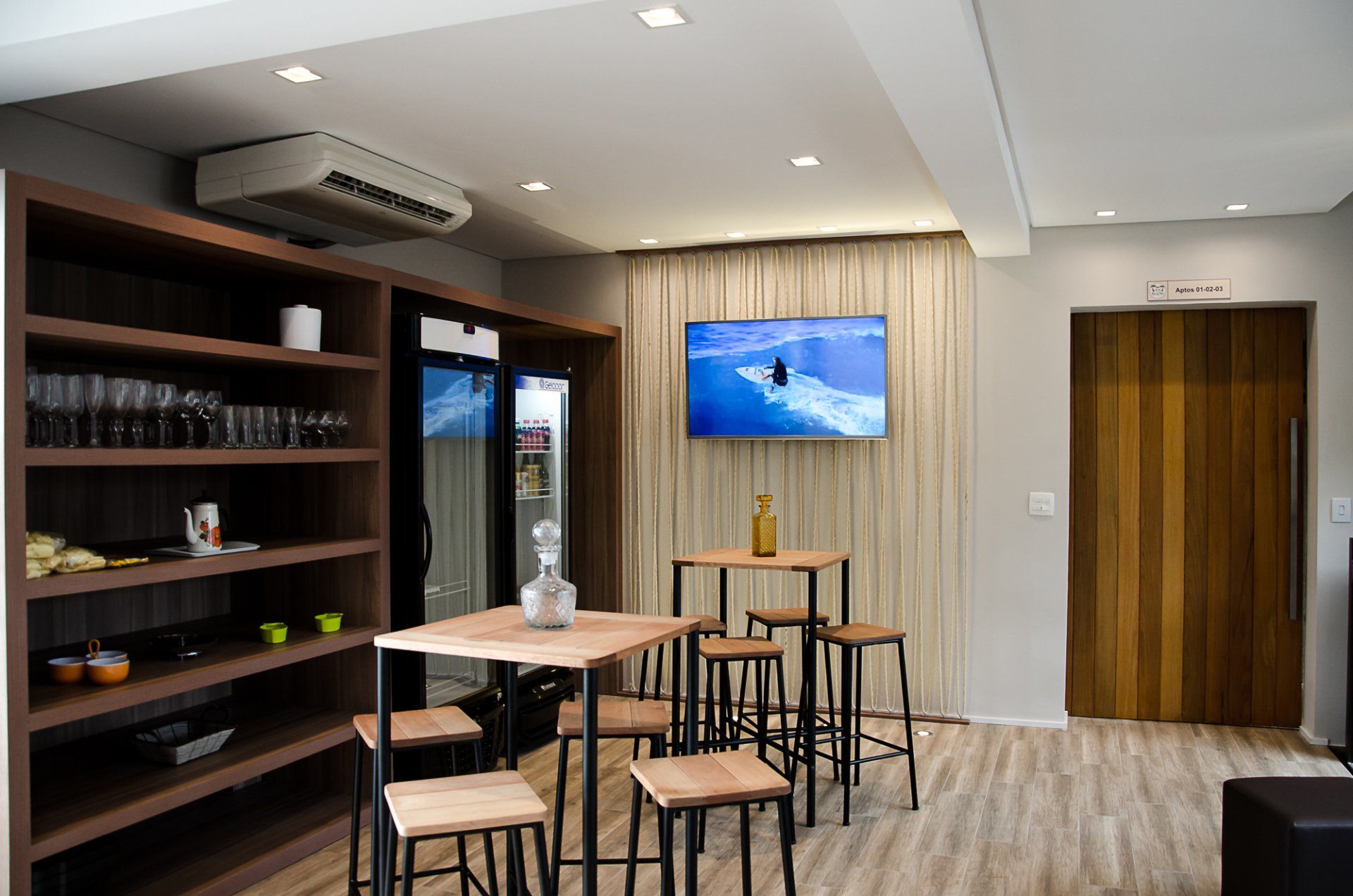Nossos flats são de 28,36m² e 36,05m² com opção de 01 dormitório ou 01 dormitório com antessala, dispõem de minicozinha e banheiro privativo. Os quartos são equipados com 2 camas de solteiro ou cama casal king Size (apartamentos com antessala dispomos de sofá bicama) ar condicionado, armário, escrivaninha, maleiro, cofre eletrônico e TV. Minicozinha com utensílios (pratos, copos, leiteira, frigideira, panela 22cm e etc.), fogão de indução, frigobar, micro-ondas e mesa com cadeiras.